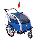 Aosom Elite II 3in1 Double Child Bike Trailer, Stroller & Jogger - Blue